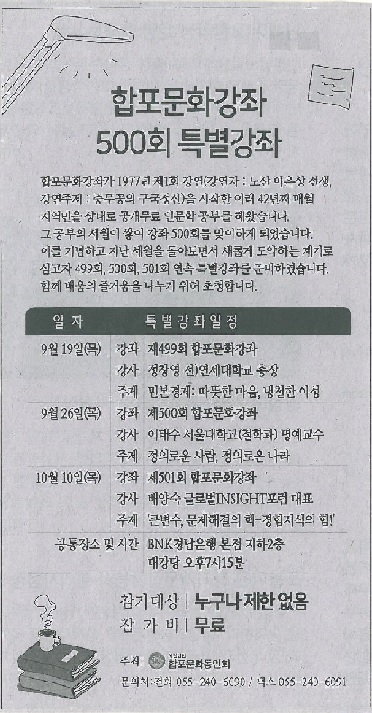 | 28 | 월 19.09.19-제500회 특별강좌 (경남도민일보) ![]() |