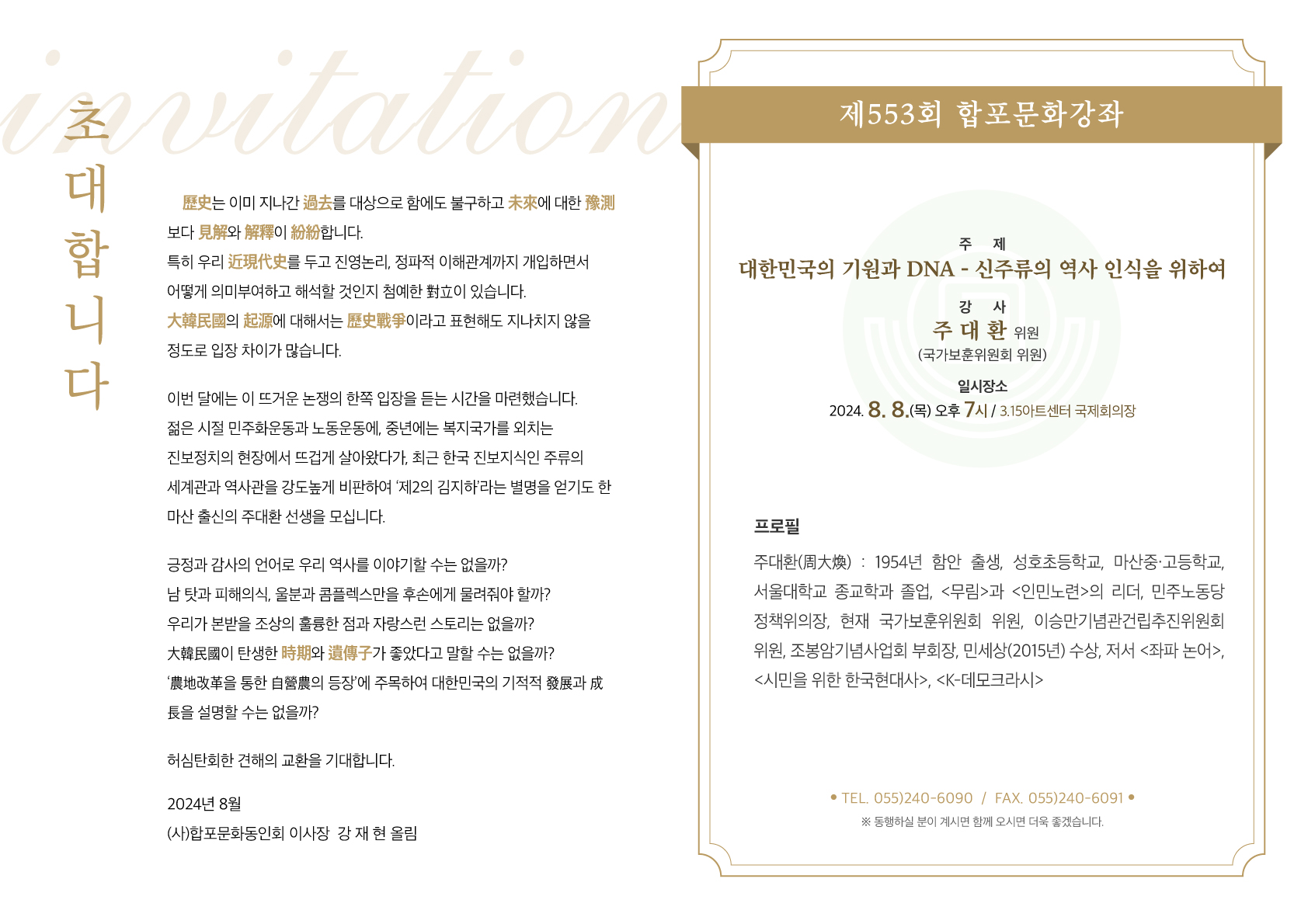 322 8월 제553회 합포문화강좌 개최안내 [인기글] 첨부파일 관리자 2024/07/24 1305
