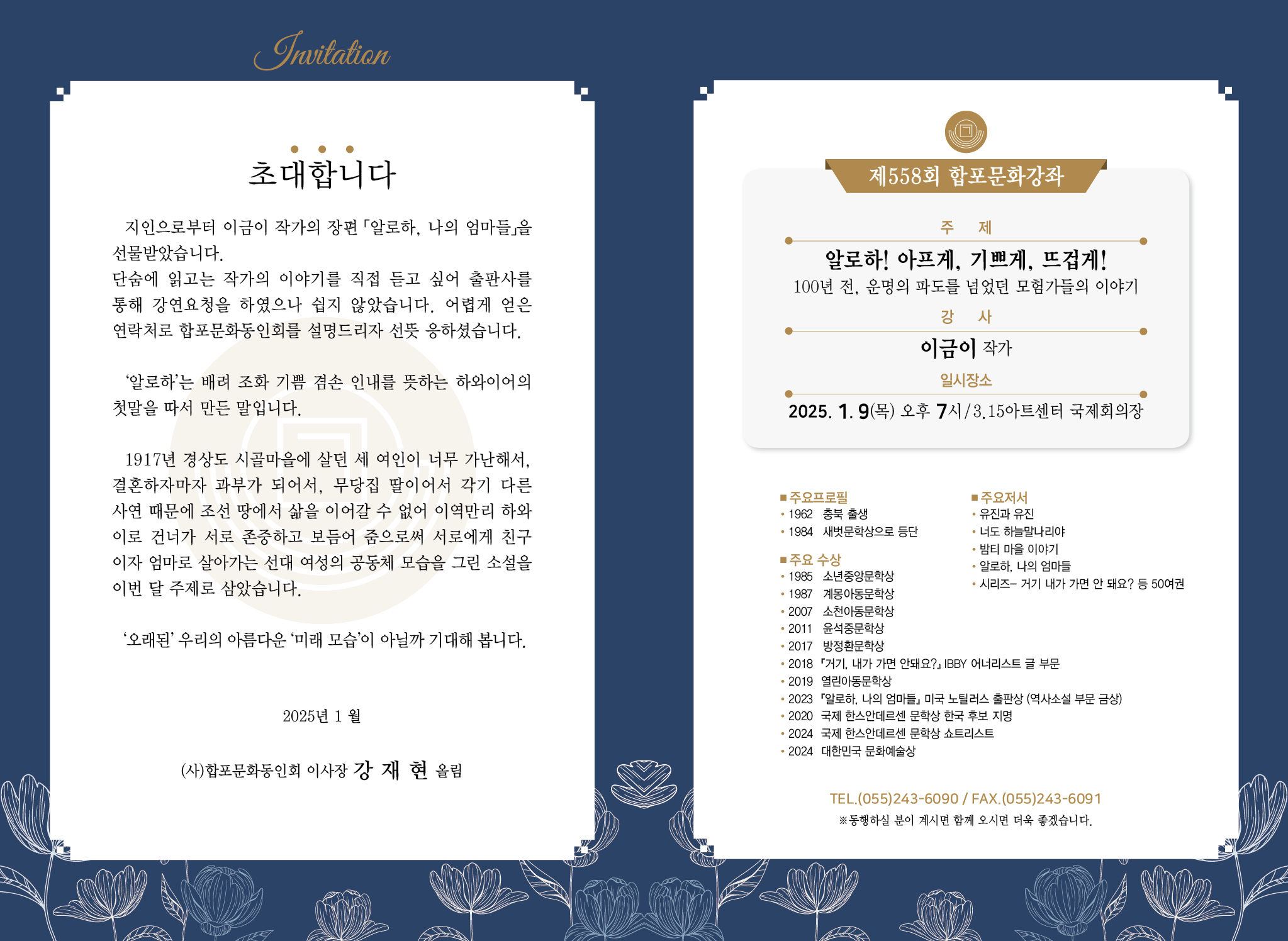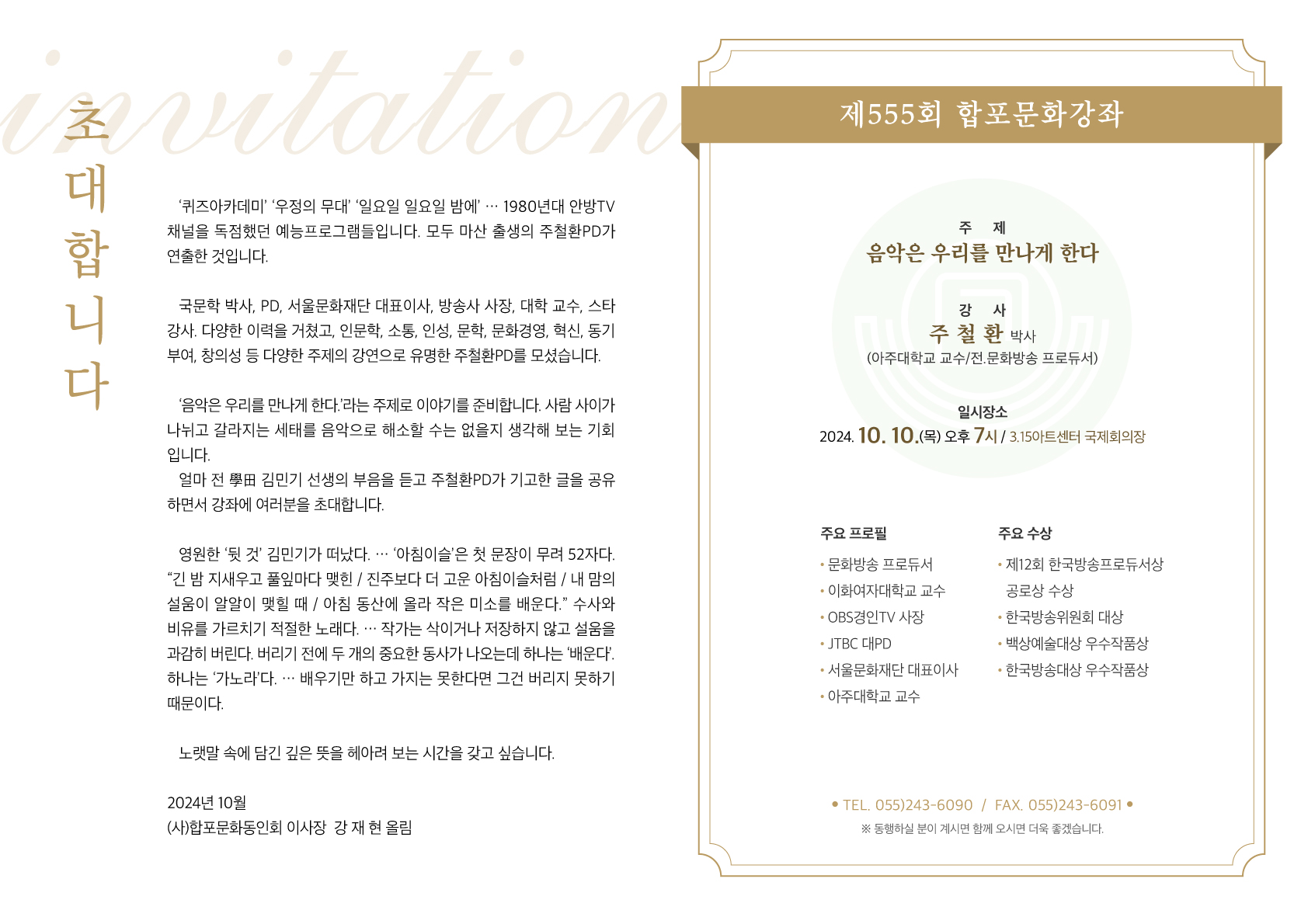 325 10월 제555회 합포문화강좌 개최안내 [인기글] 첨부파일 관리자 2024/09/27 1208