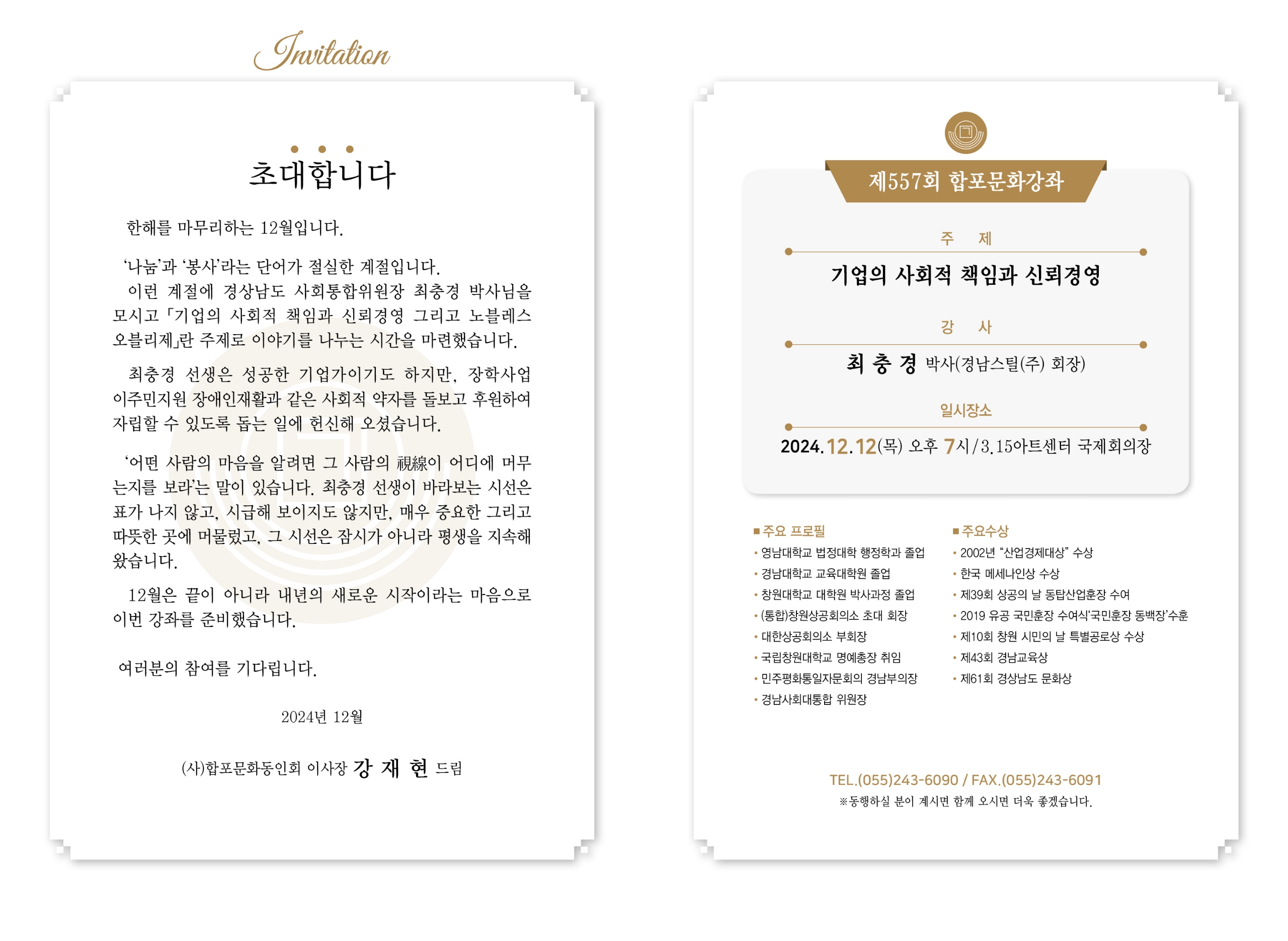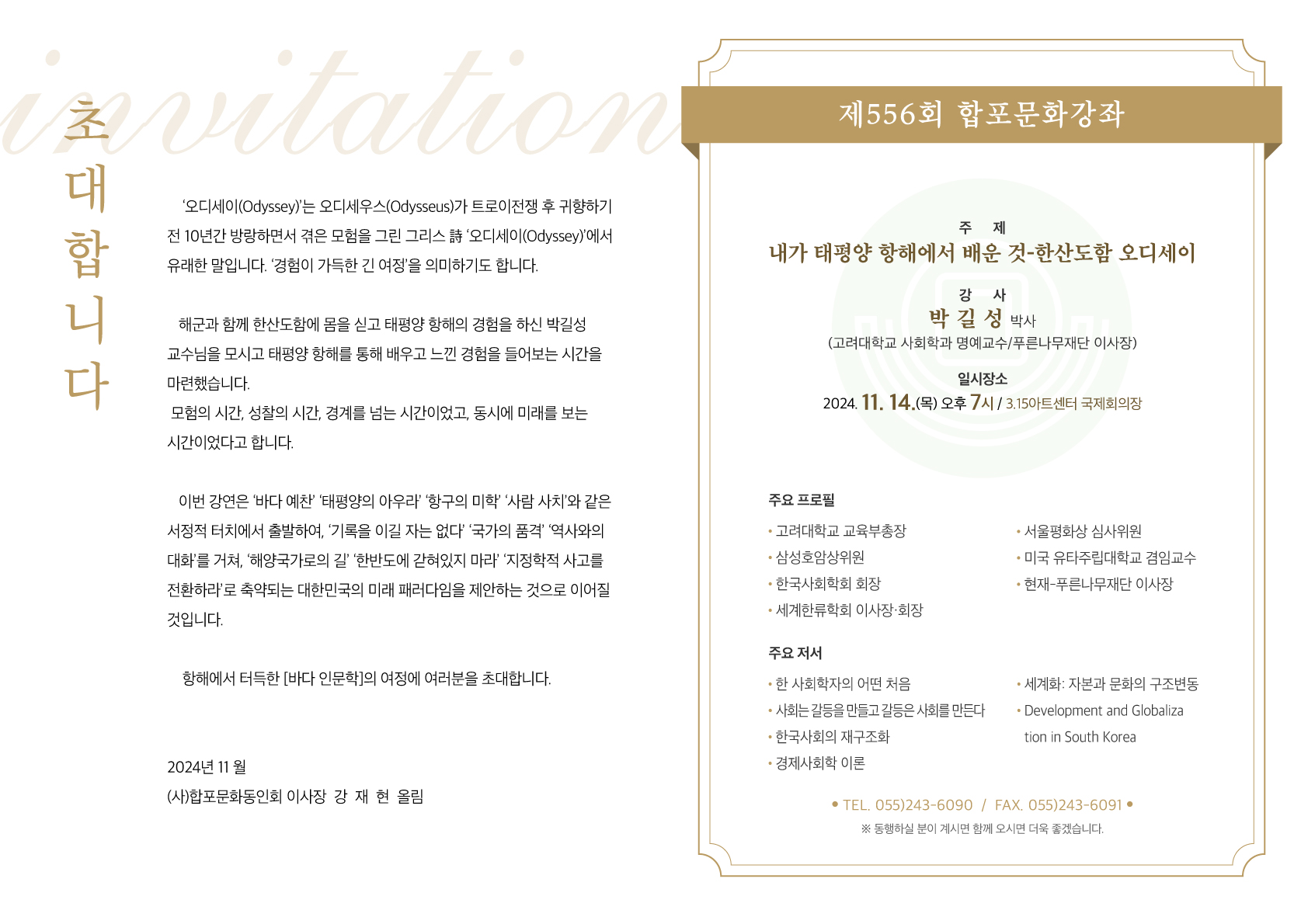 327 11월 제556회 합포문화강좌 개최안내 [인기글] 첨부파일 관리자 2024/10/30 1079